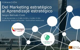 NOTICIAS Nueva formación gratuita en TechnoPark MotorLand: ‘Del marketing estratégico al aprendizaje estratégico’ Los nuevos tiempos se presentan como algo complejos y a su vez apasionantes, llenos de retos y oportunidades para aquellos que sean capaces de detectarlas. El jueves 11 de noviembre Sergio Bernués impartirá el curso “Del marketing estratégico al aprendizaje estratégico” en TechnoPark